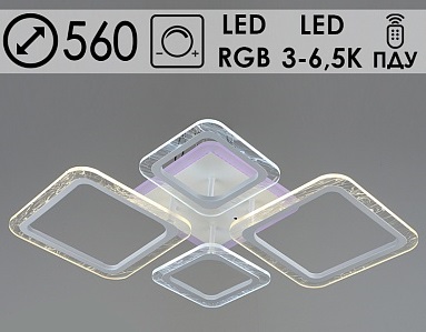 Люстра YH383/2+2 WT белый LED 2х(8W+14W)3000K+65000K+1х16W RGB ПДУ диммер d560, QH22